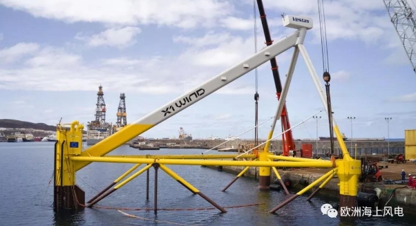 這臺與實物比例為1:3的浮式樣機,配套一臺225kW的Vestas V29風機,采用張力腿浮式基礎(chǔ)及單點系泊系統(tǒng);風機無塔筒,大幅減少用鋼量;整個漂浮式風機采用下風式設(shè)計,可與盛行風方向配合,更好地利用風資源。